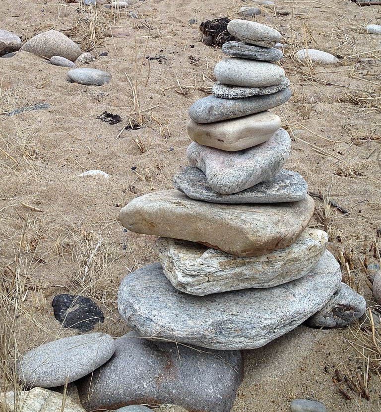 I don't know what is it about rocks that compels people to stack them like pancakes, but cairns like the one here are as common a sight along the beach in Montauk as they are universally. What do they signify? There are almost as many answers as there are fish in the sea. They're landmarks, trail markers, religious shrines. In Asia and the Pacific, they think they stop the dead from rising. Here, I think it's safe to say, the totems are purely decorative. Or a result of sunstroke.